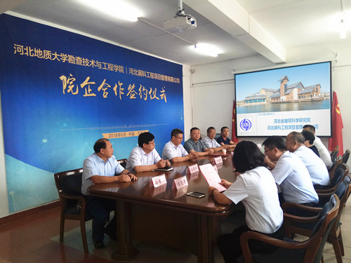 2018年6月13日,公司與河北地質(zhì)大學(xué)勘查技術(shù)與工程學(xué)院舉行了院企合作簽約儀式。公司總經(jīng)理郭建明,副總經(jīng)理宋俊嶺、谷耀杰、侯克芳和各部門經(jīng)理以及院方河北地質(zhì)大學(xué)勘查技術(shù)與工程學(xué)院院長碩良勛、副院長宋雪琳、實(shí)驗(yàn)中心主任李治廣、教研室副主任諶會芹、副教授解詠平出席了簽約儀式。