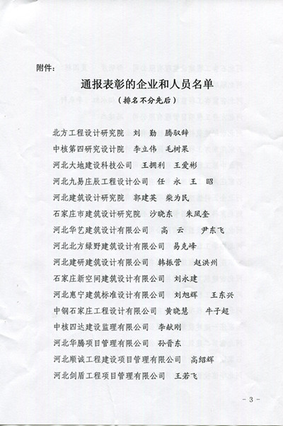 我公司員工康志平參加7.19洪澇災(zāi)害農(nóng)村危房調(diào)查核實安全鑒定工作受到石家莊市住房和城鄉(xiāng)建設(shè)局表彰